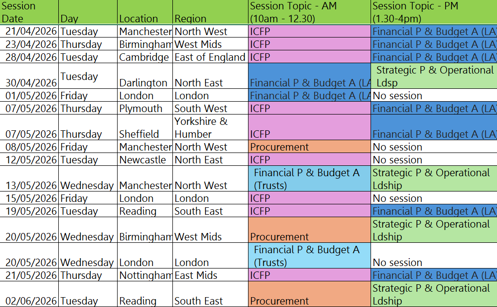 • Financial Planning & Budgeting Assumptions (separate sessions for LA maintained schools & academy trusts)